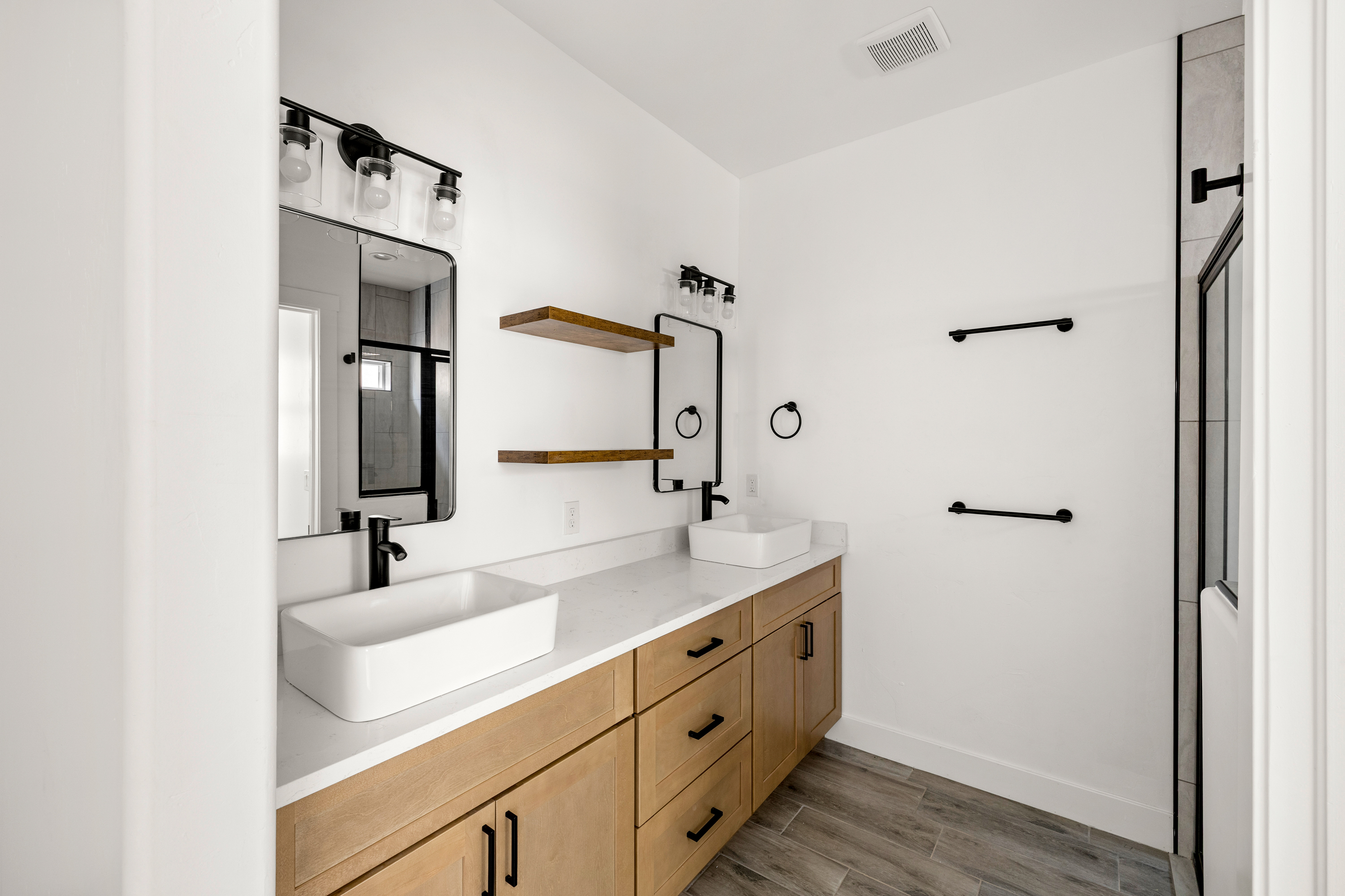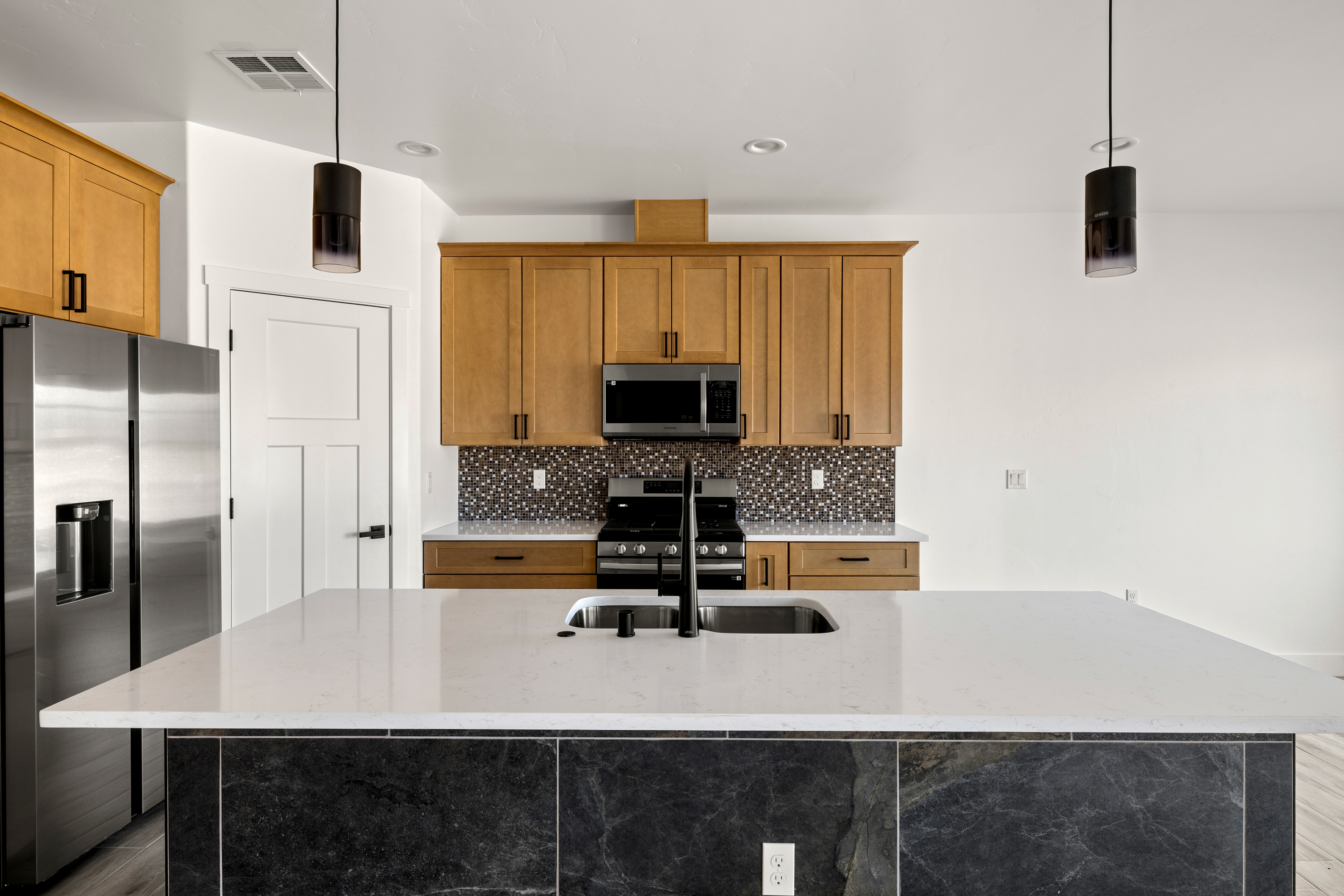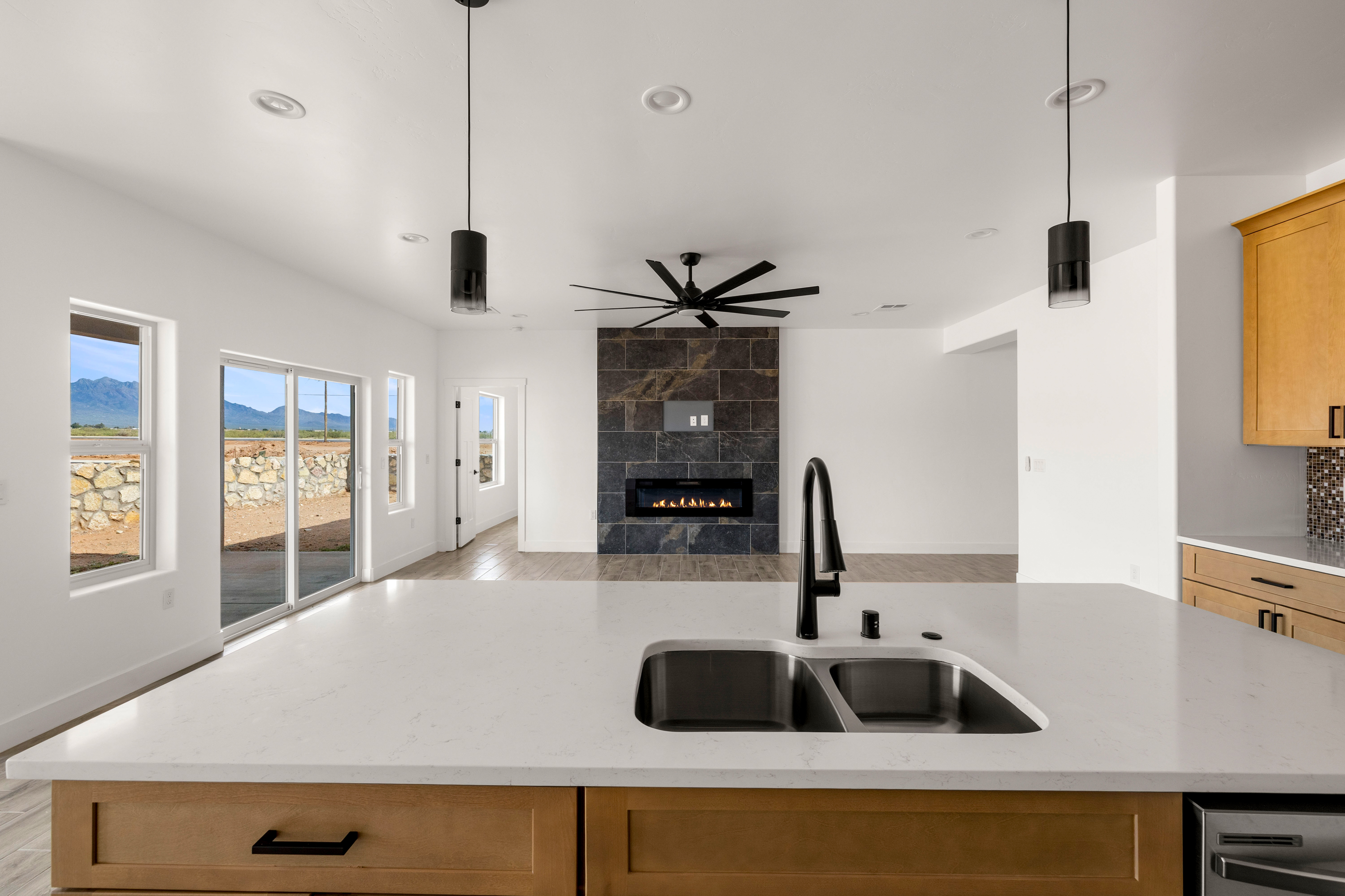 Welcome to The Beverley. This thoughtfully designed home offers 4 bedrooms, 2 bathrooms, and a spacious 2-car garage, creating an easy balance of comfort and functionality. The open-concept layout connects the kitchen, dining, and living areas, making everyday living and gatherings effortless. The kitchen features wood-look shaker cabinets, white quartz countertops, a coordinating backsplash, black or nickel hardware, and stainless steel appliances including a gas range, microwave, dishwasher, and refrigerator. A modern fireplace that can be a great upgrade, with a tiled accent wall that anchors the living space and complements the kitchen island for a cohesive, contemporary feel. The primary suite provides a relaxing retreat with a dual-sink vanity, walk-in shower, and generous closet space. Three additional bedrooms and a full bath offer flexibility for guests, work, or hobbies. A dedicated laundry room, modern tile flooring, and stylish lighting complete the space. With nearly 2,000 sq ft, this home offers room to live, work, and unwind in comfort.