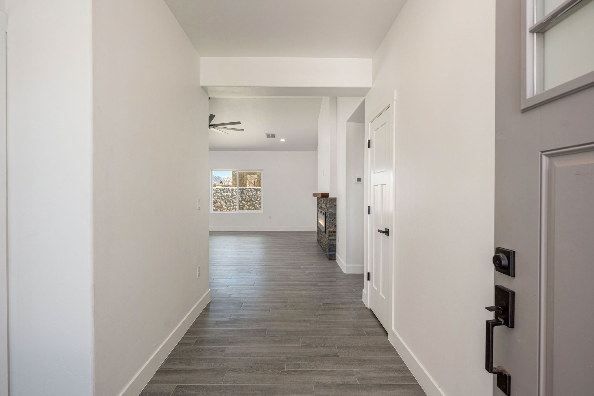 Introducing The Sofia a beautifully designed 3-bedroom, 2-bathroom home with a spacious 2-car garage and a well sized backyard! The open layout features either vaulted ceiling or tall inset ceilings that connect the living room, dining area, and kitchen, perfect for everyday living and entertaining. The kitchen includes modern shaker cabinets, quartz countertops, tile backsplash, black or nickel hardware, a large island wrapped in stone veneer, pendant lights, recessed lighting, and stainless steel appliances including a gas range, microwave, dishwasher, and refrigerator. The living area features a modern fireplace with matching stone up to the mantel for a cohesive look. The primary suite offers a spacious bedroom, dual sinks, a walk-in shower, and a large closet. Two guest bedrooms share a full bathroom with a tub/shower combo. A wide hallway entry and plenty of lighting throughout complete the home. Excellent style, space, and value all in one!
